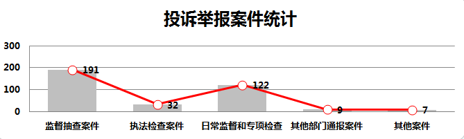 从案件来源看,来源于投诉举报的案件40件,来源于监督抽查的案件191件,来源于执法检查的案件32件,来源于日常监督和专项检查的案件122件,其他部门通报的案件9件,其他的案件7件。